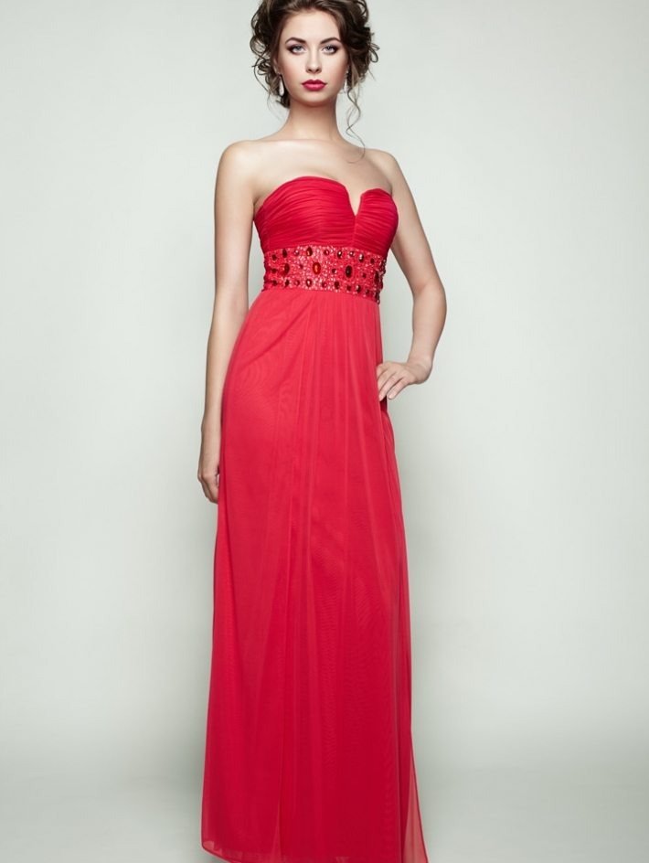 Vestido maxi rojo sin tirantes